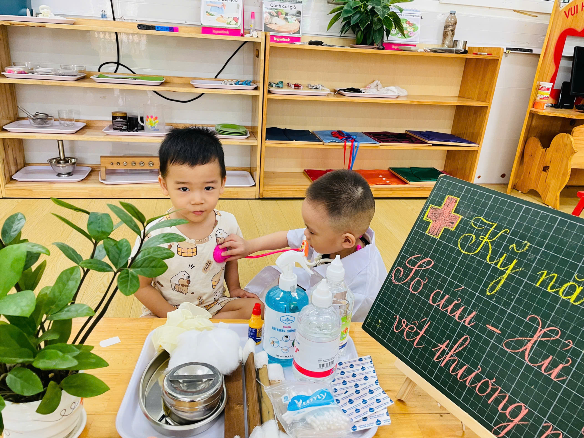 Hôm nay trong giờ Kỹ năng sống, các bé hóa thân thành bác sĩ siêu đáng yêu, học cách xử lý vết thương nho nhỏ:
