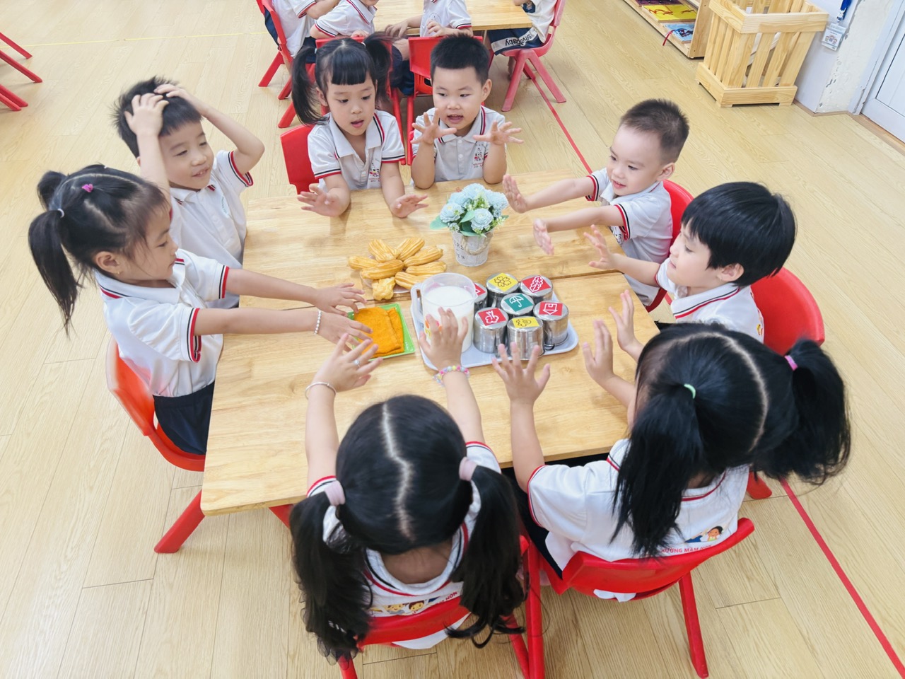 🌷 Các con học cách chờ đến lượt, mời bạn – mời cô, và cùng nhau nói lời cảm ơn trước khi thưởng thức món ngon.