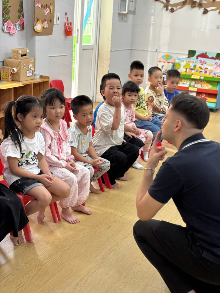 💕💕Các con đã được chào hỏi, giới thiệu bản thân, gọi tên đồ vật – con vật quen thuộc bằng tiếng Anh và đặc biệt là mạnh dạn giơ tay trả lời, giao tiếp với thầy giáo. Nụ cười rạng rỡ và sự hào hứng của các bé chính là niềm vui và động lực của cô giáo mỗi ngày! 📸 Mời bố mẹ cùng xem những khoảnh khắc đáng yêu của các con trong tiết học hôm nay nhé!