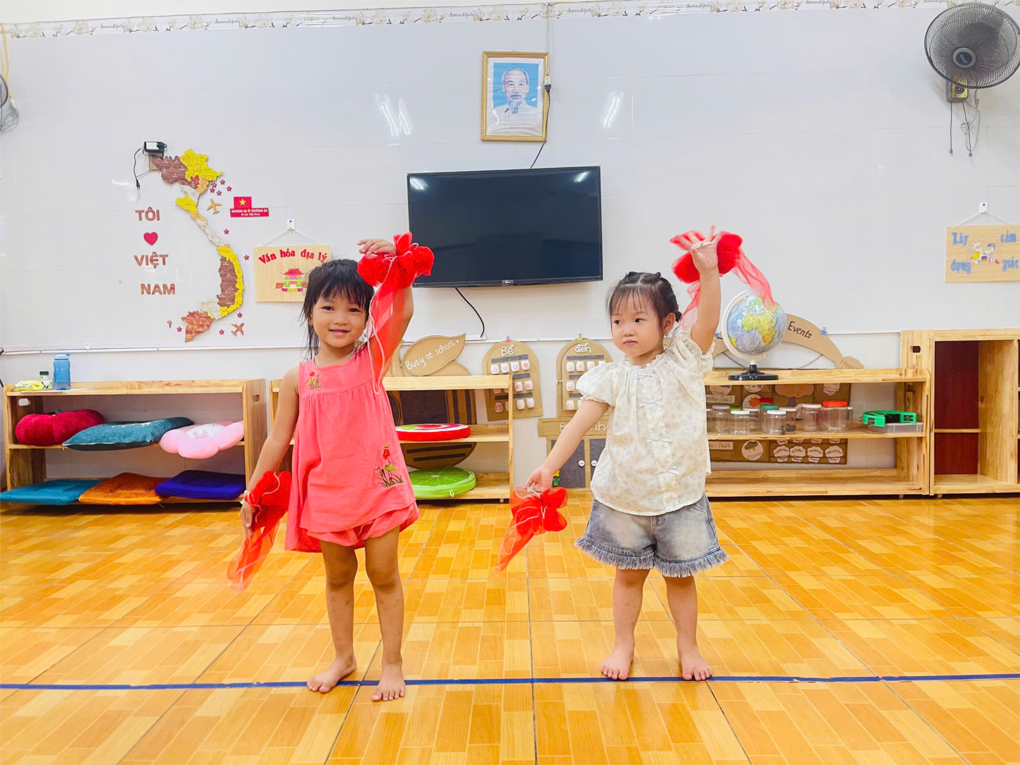 🔔Các con múa rất say xưa, chơi trò chơi “ Nghe âm thanh đoán tên nhạc cụ” rất sôi nổi.