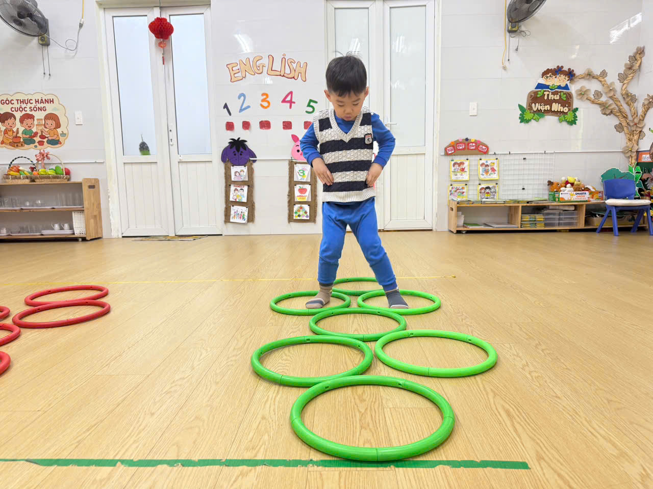 • Phát triển khả năng giữ thăng bằng: Hoạt động giúp trẻ kiểm soát tư thế cơ thể khi bật, hạn chế ngã và tăng sự tự tin khi vận động.