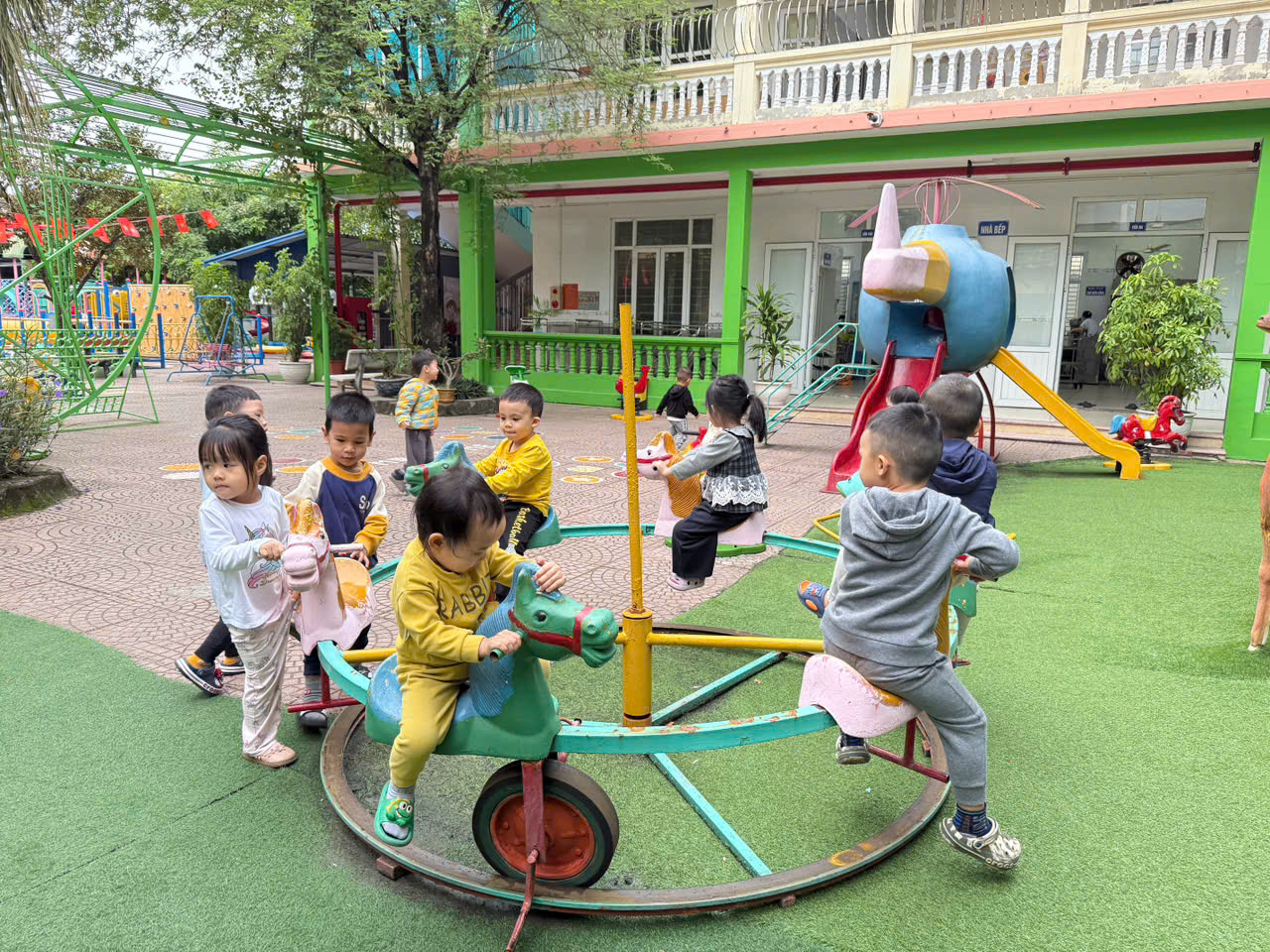 * Bên cạnh đó, việc vận động với các trò chơi trên sân trường giúp trẻ phát triển thể lực, sự nhanh nhẹn, khéo léo và tinh thần hợp tác khi chơi cùng bạn bè.