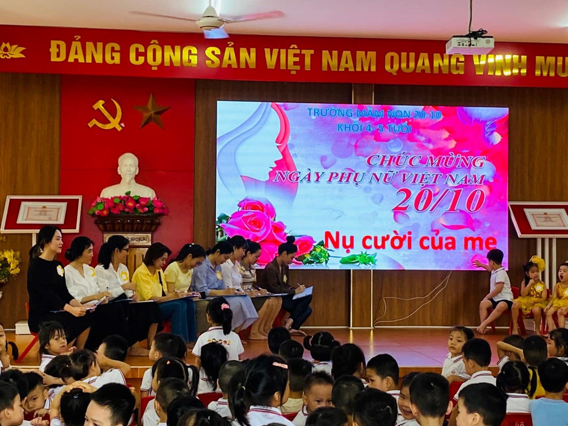 Chuỗi Kỉ niệm ngày Phụ nữ Việt Nam trường Mầm non 20-10 trong tuần vừa qua đã để lại bao kỉ niệm khó quên. Nhưng có lẽ đong đầy nhất, chạm vào cảm xúc tới mỗi thành viên cô giáo, trẻ, phụ huynh của Đại gia đình trường Mầm non 20-10 nhất có lẽ là chương trình: “NỤ CƯỜI CỦA MẸ”!