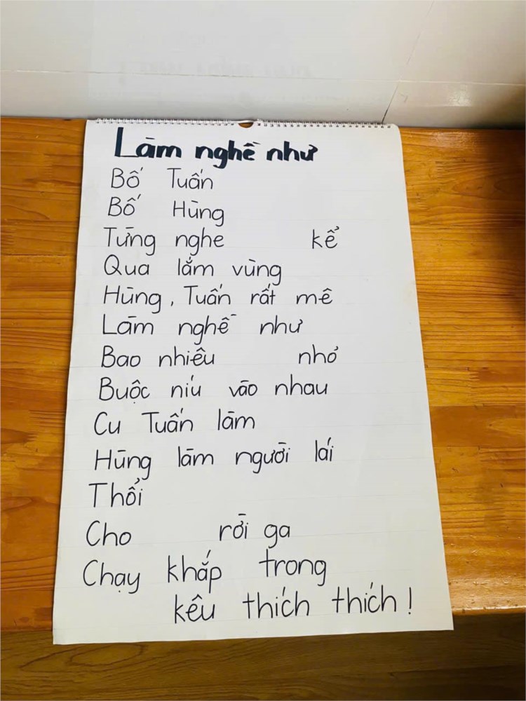 Để chuẩn bị cho chủ đề “Nghề nghiệp”, các bé lớp 4TA1- Montessori đã cùng cô chuẩn bị đồ dùng cho chủ đề. Ngày hôm nay các bé đã cùng cô tô màu, cắt, dán tạo nên một bài thơ chữ to: “Làm nghề như bố” của tác giả Thu Quỳnh.