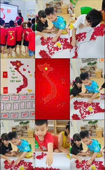Montessori đã cùng nhau gửi gắm tình yêu quê hương đất nước qua hoạt động trang trí bản đồ Việt Nam.