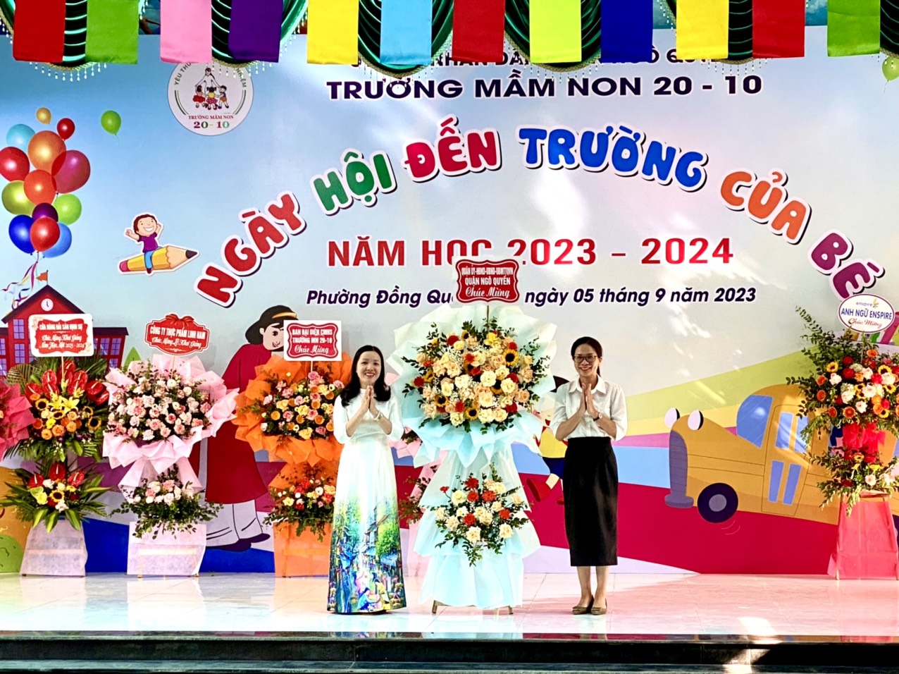 Đến dự và chúc mừng có các cô bác đại diện lãnh đạo Quận uỷ, Hội đồng nhân dân, Uỷ ban nhân dân, Uỷ ban mặt Mặt trận Tổ Quốc Việt Nam quận Ngô Quyền; Đại diện lãnh đạo Đảng uỷ, Hội đồng nhân dân, Uỷ ban nhân dân, Uỷ ban mặt Mặt trận Tổ Quốc Việt Nam phường Đồng Quốc Bình; Lãnh đạo Công an phường Đồng Quốc Bình; Các ông bà tổ trưởng, Bí thư Tổ dân phố, Ban đại diện cha mẹ học sinh nhà trường, cha mẹ học sinh các lớp, toàn thể cán bộ, giáo viên nhân viên và đặc biệt sự có mặt của gần 400 học sinh trường Mầm non 20-10.