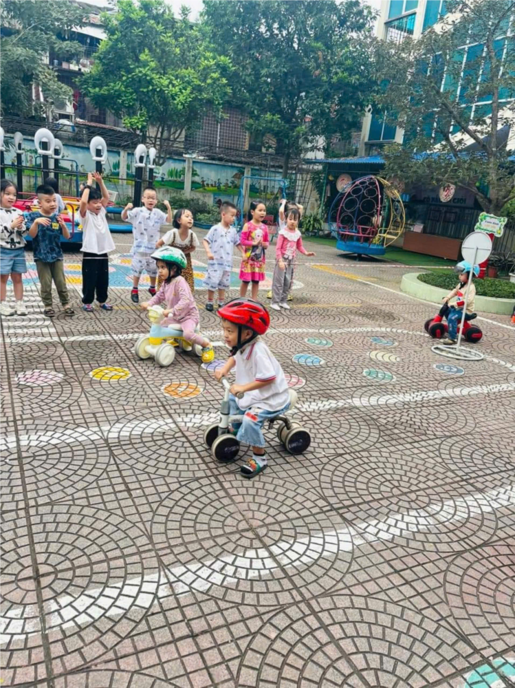 Ngoài ra nhà trường còn phối hợp với Đoàn viên thanh niên hưởng ứng tháng ATGT, hướng dẫn phụ huynh để xe đúng quy định khi đưa đón trẻ tới trường, không để ùn tắc giao thông trước cổng trường, không đi xe vào khu vực sân trong của trường nhằm đảm bảo an toàn cho trẻ trong trường mầm non. Mời cảnh sát giao thông tổ chức buổi nói chuyện, truyền thông về giáo dục an toàn giao thông cho trẻ mẫu giáo.