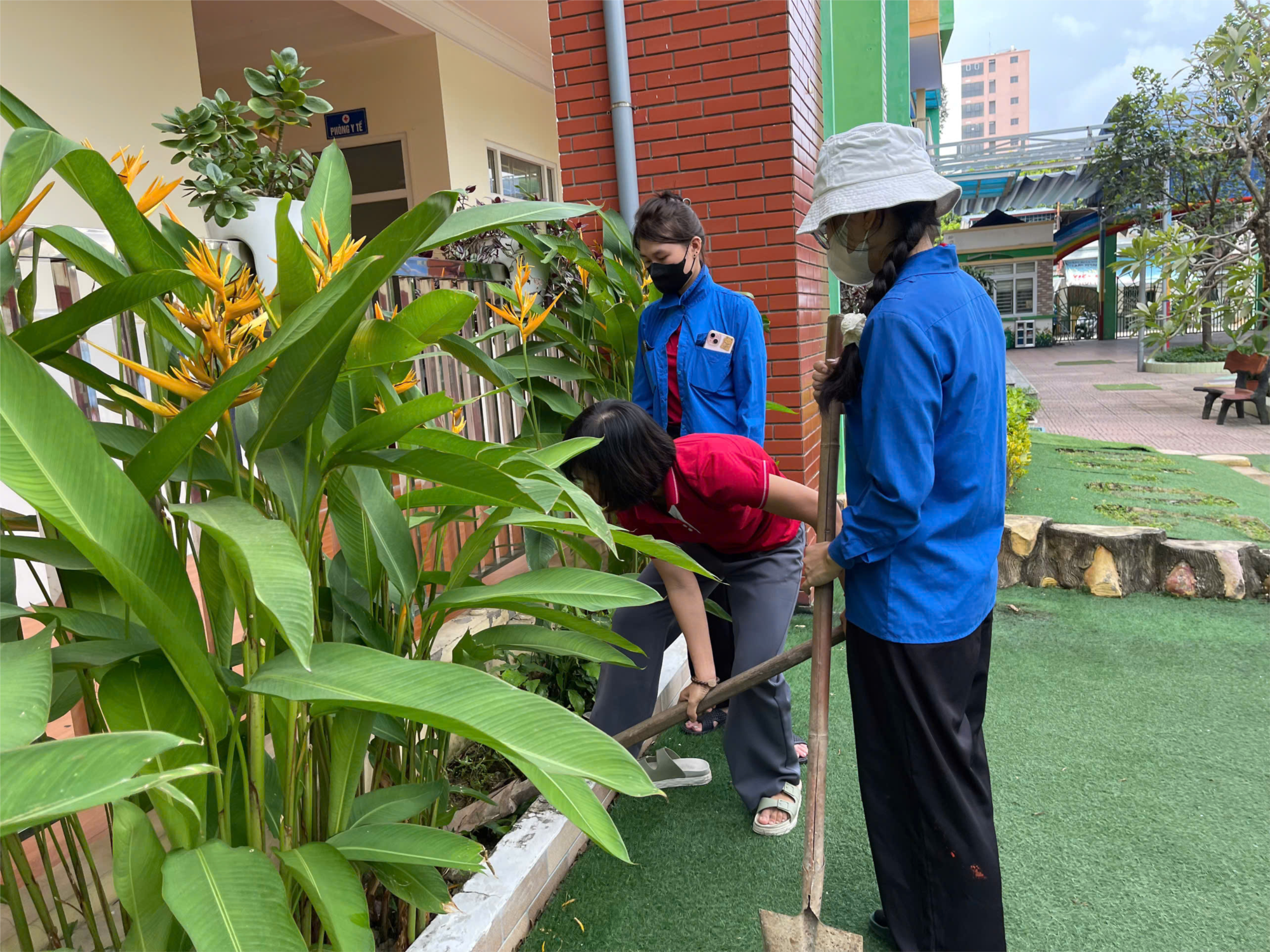 Nhằm khôi phục lại khuôn viên cây xanh nhà trường sau đợt tàn phá của cơn bão số 3, Đoàn thanh niên Trường Mầm non 20-10 ra quân chung tay khôi phục, cải tạo lại góc thiên nhiên, vườn cây xanh của nhà trường, chung tay xây dựng khuôn viên nhà trường xanh, sạch, đẹp.